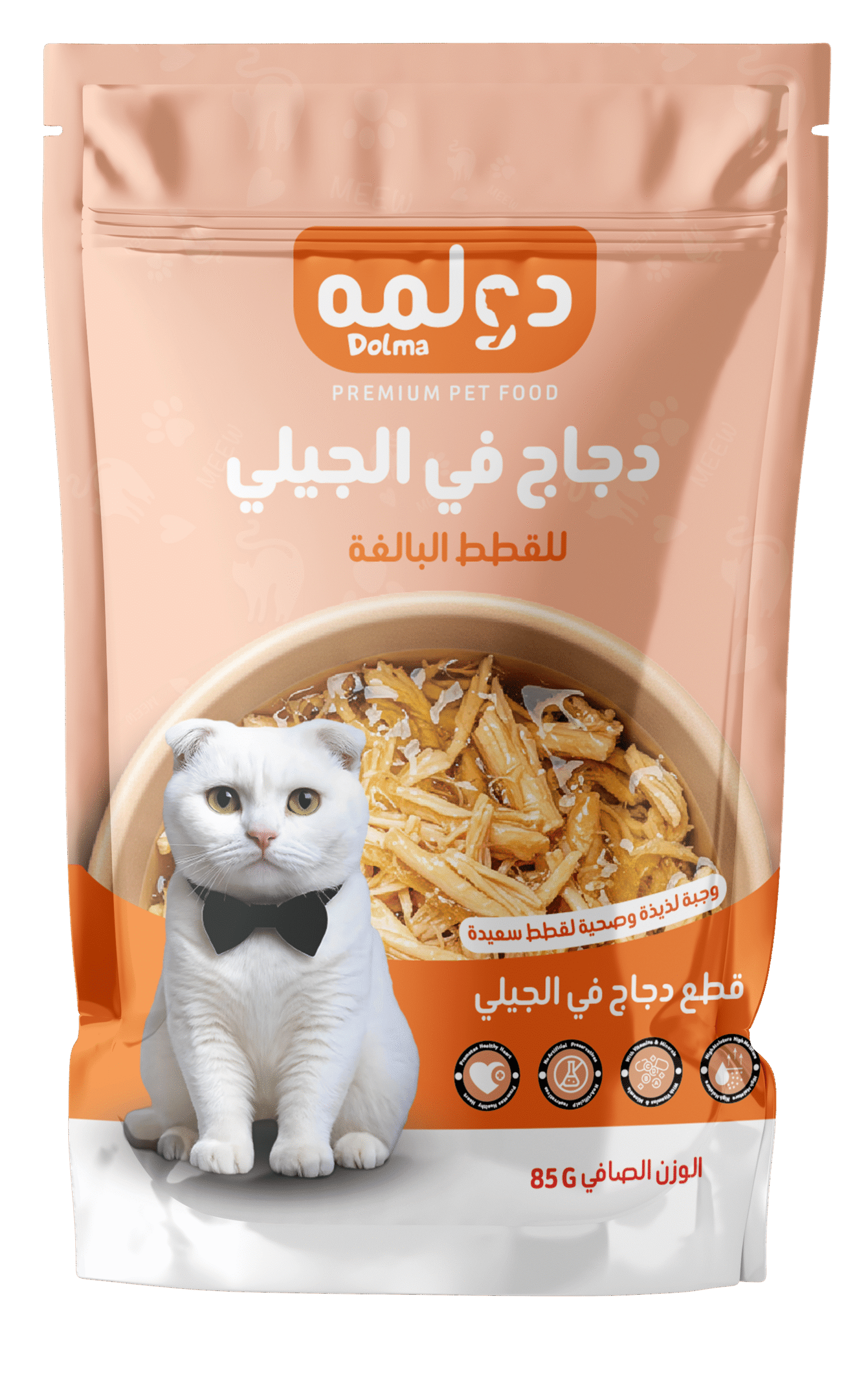 شرائح دجاج طرية في جيلي شهي للقطط، بطعم فاخر يشبه سيزر.