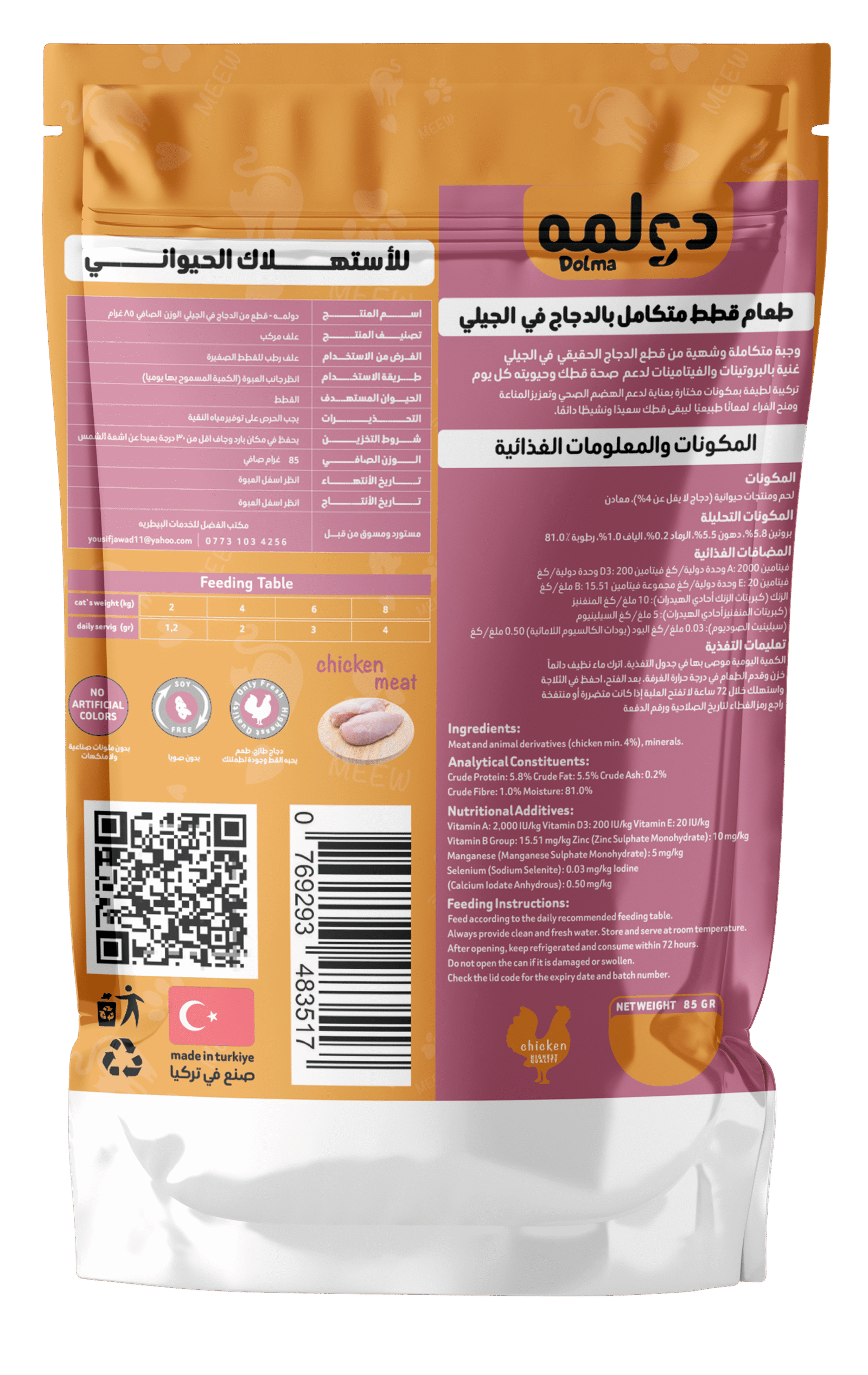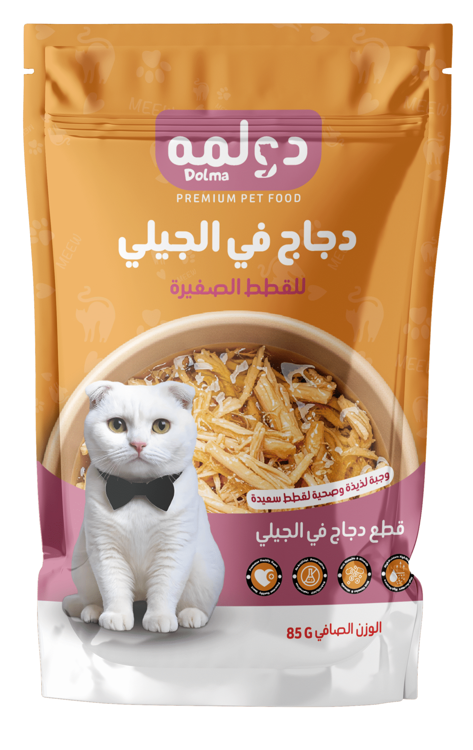 شرائح دجاج طرية في جيلي شهي للقطط الصغيرة، بطعم فاخر يشبه سيزر.